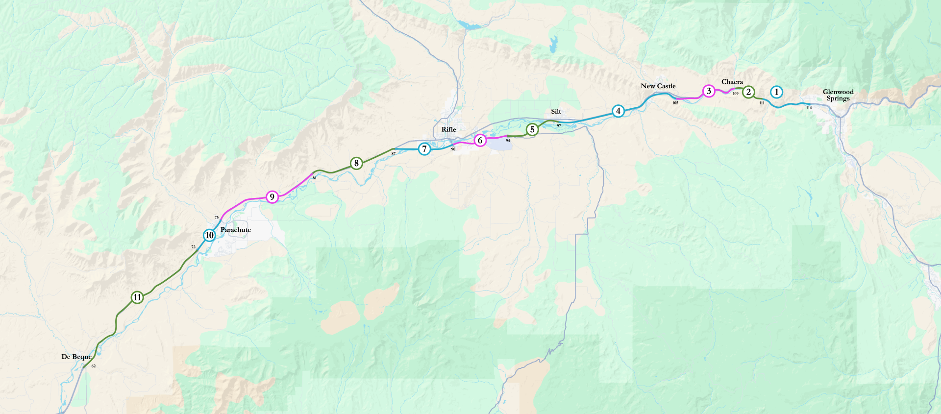 The first section of the Lova Trail system. Starting at Mitchell Creek and running to South Canyon exit 111